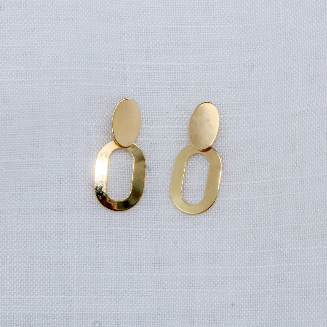Brinco Chapa Oval com Franjas Douradas Elegância em movimento! Este brinco apresenta uma chapa oval...
