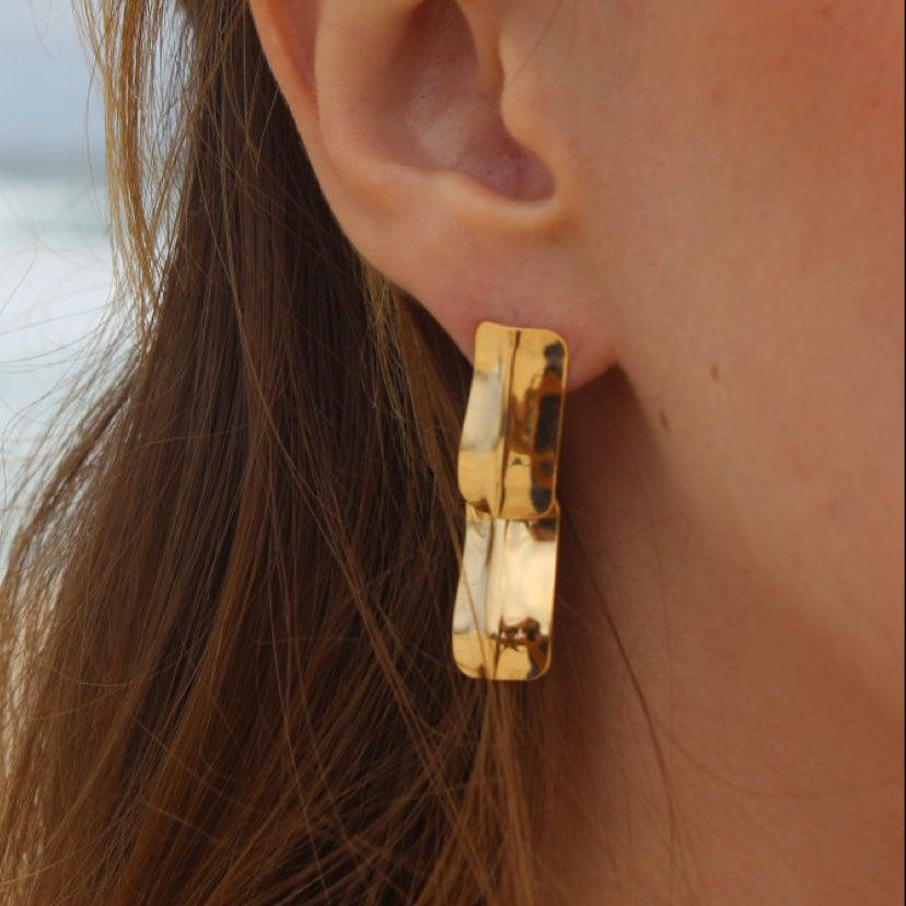 Brinco Abaloado Com Frisos Dourado Elegância em movimento. Este brinco combina texturas sofisticadas com o...