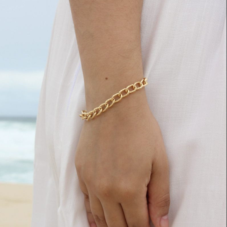 Pulseira Elo Texturizado Dourado