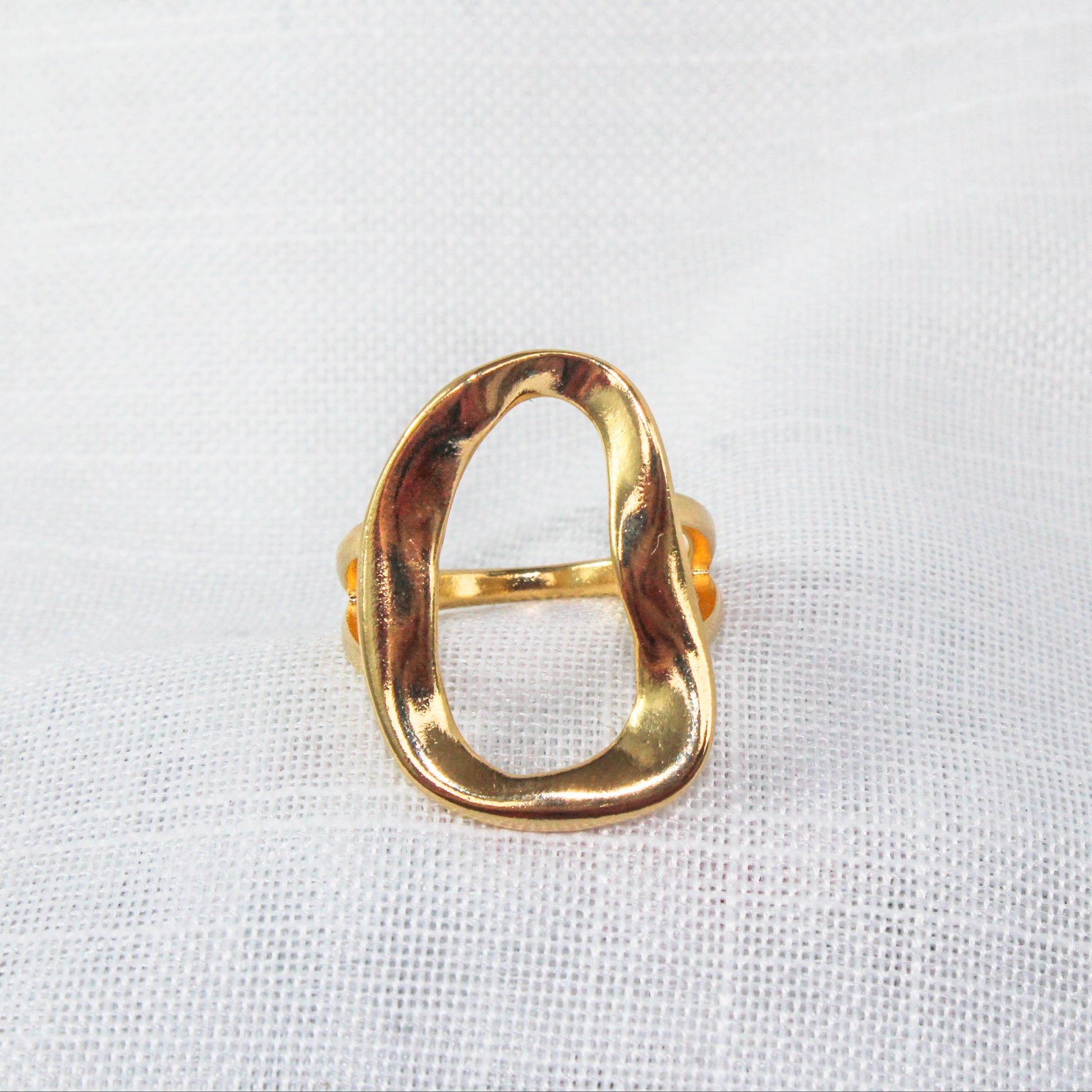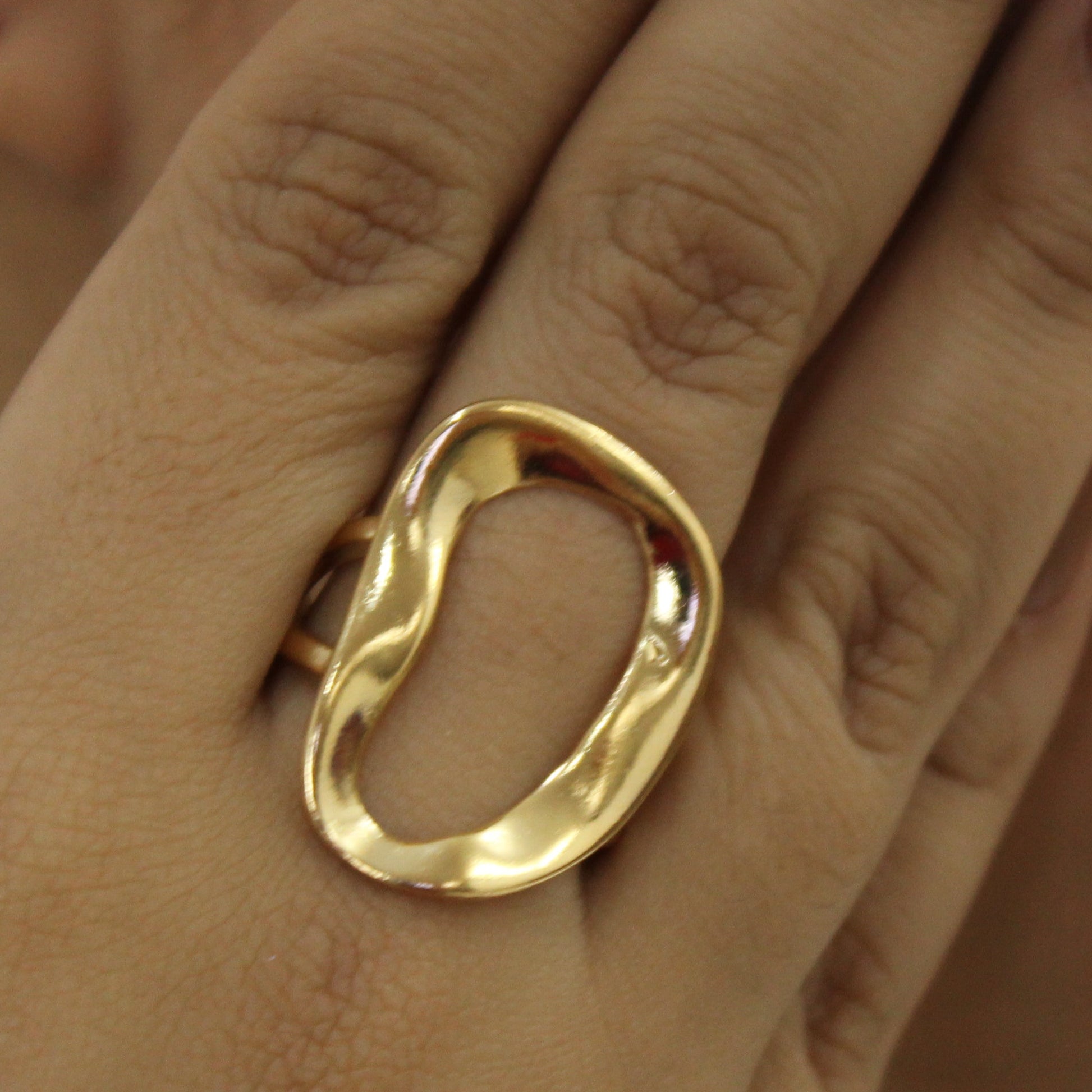 Anel Círculo Derretido Dourado Esse anel traz um design contemporâneo e sofisticado que complementa qualquer look com elegância. O acabamento derretido cria uma textura única e orgânica, enquanto o ouro confere um toque de luxo atemporal. Perfeito para quem busca uma peça versátil que funciona tanto no dia a dia quanto em ocasiões especiais. Use como statement piece ou combine com outros anéis para criar uma composição pessoal e cheia de estilo.