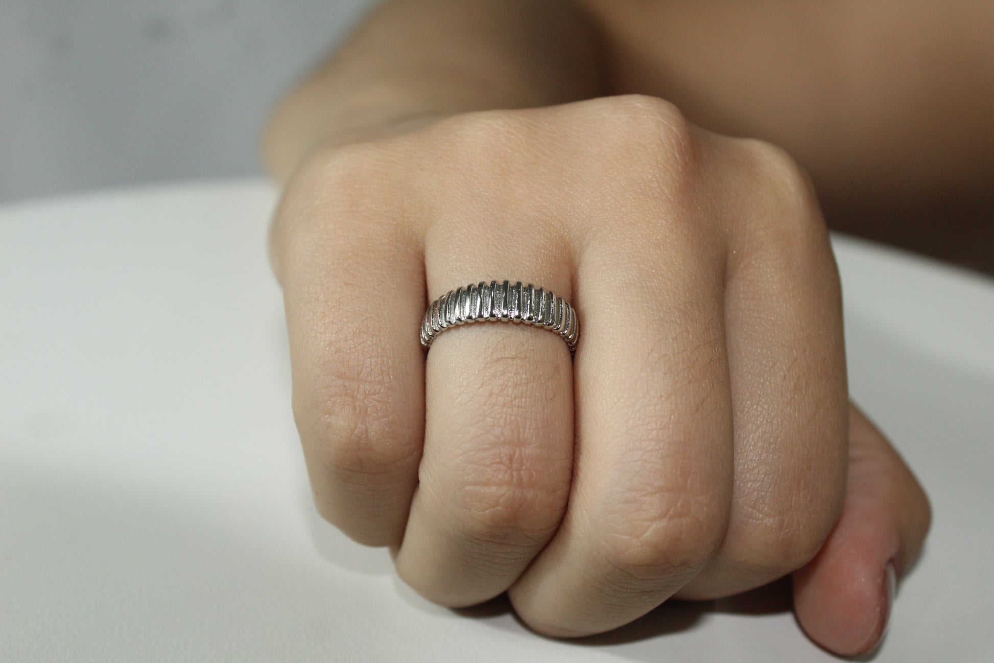 Anel com Frisos Dourado Elegância em cada detalhe. Este anel apresenta frisos trabalhados que capturam a luz de forma sofisticada, criando um efeito visual dinâmico no dedo. O acabamento dourado confere um toque de luxo atemporal, perfeito para quem deseja um acessório versátil que funciona tanto em ocasiões especiais quanto no dia a dia. Uma peça que complementa qualquer estilo com refinamento e personalidade.