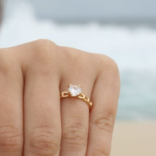 Anel Solitário com Trama Dourado