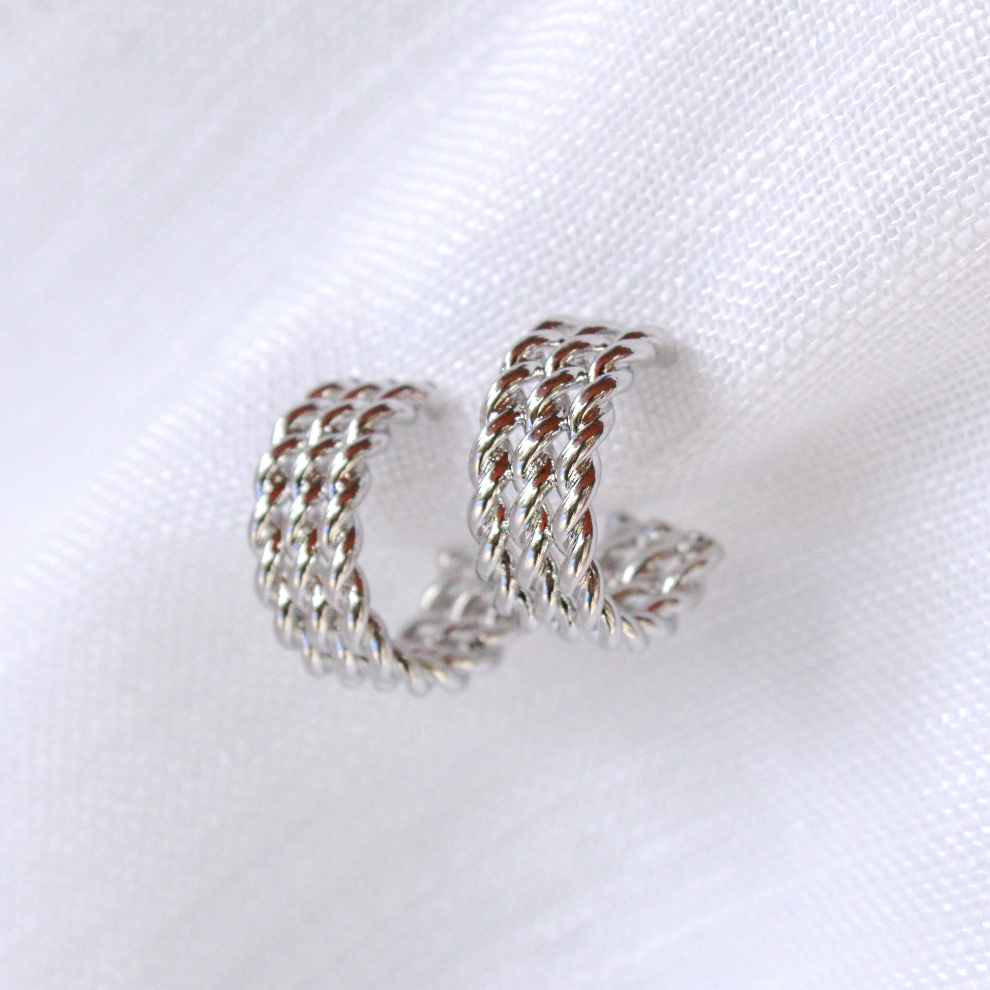 Brinco de Argola Trança Tripla Prateado
