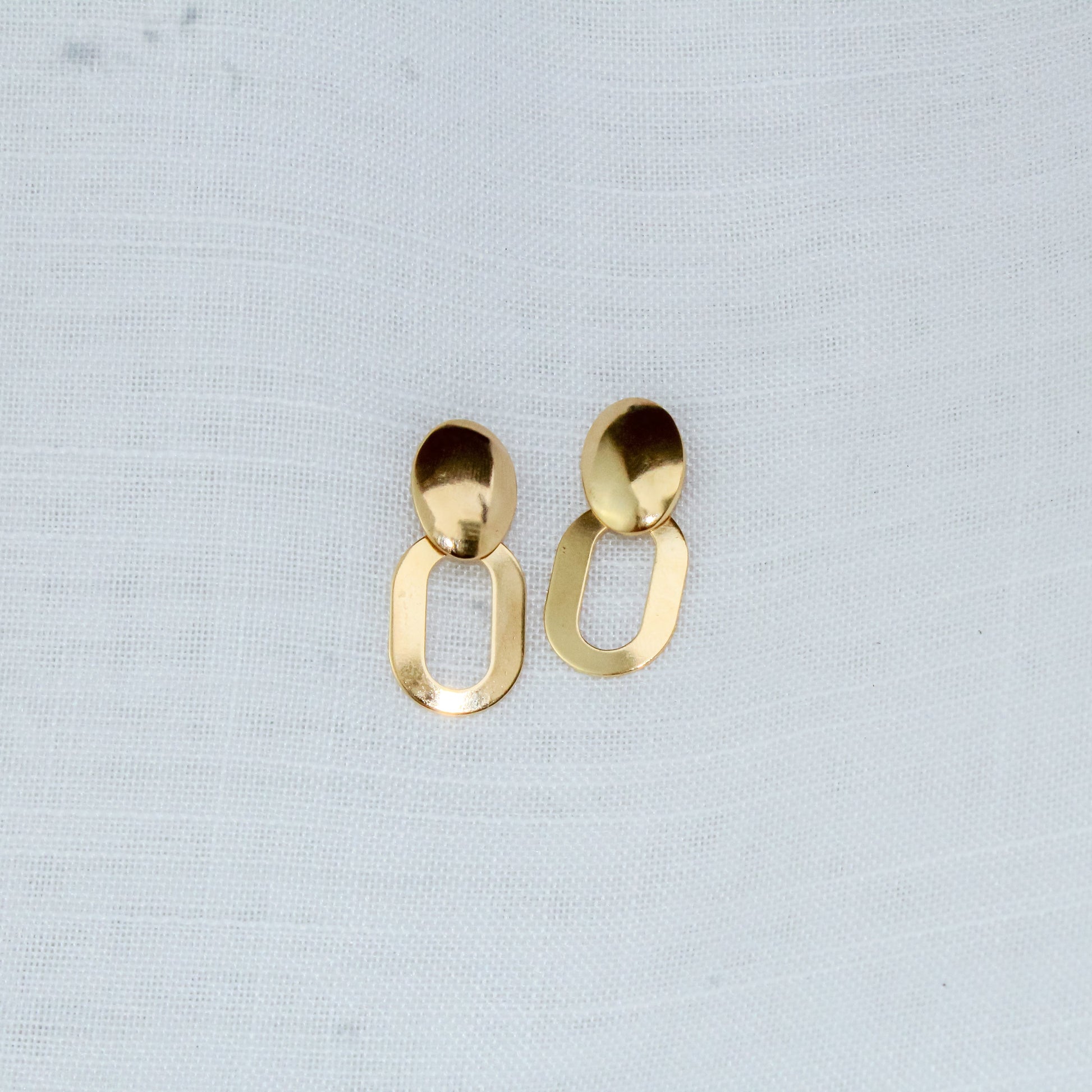 Brinco Oval Chapa Dupla Abaloado Dourado