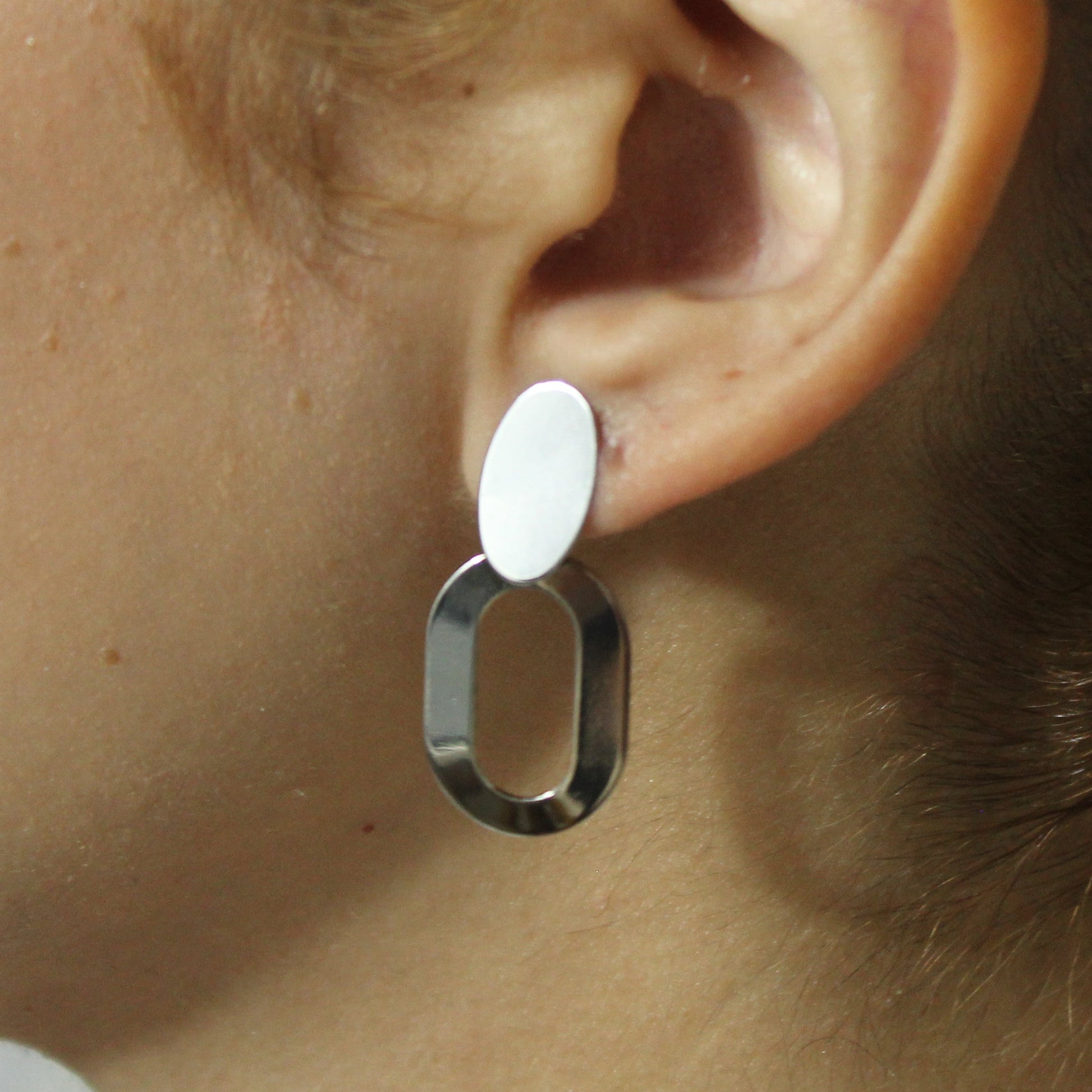 Brinco Oval Dupla prateado Elegância em duas camadas que complementa qualquer look com sofisticação. Este brinco apresenta um design oval duplo em dourado, criando profundidade e movimento que valoriza o rosto. Perfeito para quem busca um acessório versátil que funciona tanto em ocasiões especiais quanto no dia a dia. A combinação de formas geométricas oferece um toque moderno mantendo a atemporalidade do ouro. Escolha ideal para elevar seu estilo com discrição e bom gosto.
