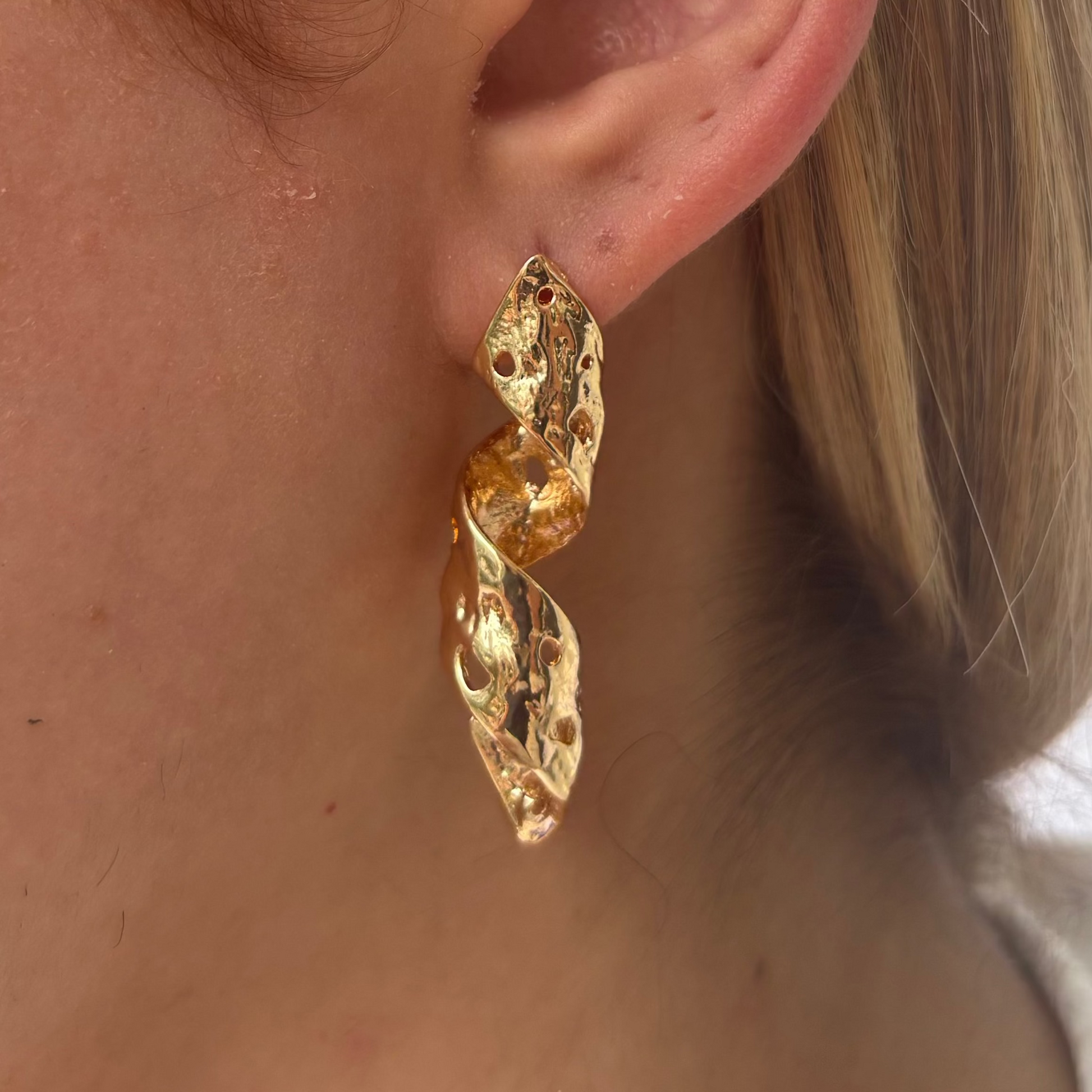 Brinco Torcido Concha Dourado que combina elegância e versatilidade. Seu design torcido em formato orgânico confere movimento e sofisticação, enquanto o acabamento dourado realça a beleza natural. Perfeito para o dia a dia, este acessório oferece presença marcante sem comprometer o conforto. Ideal para quem busca uma peça que transita entre ocasiões casuais e especiais, elevando qualquer look com estilo atemporal e refinado.