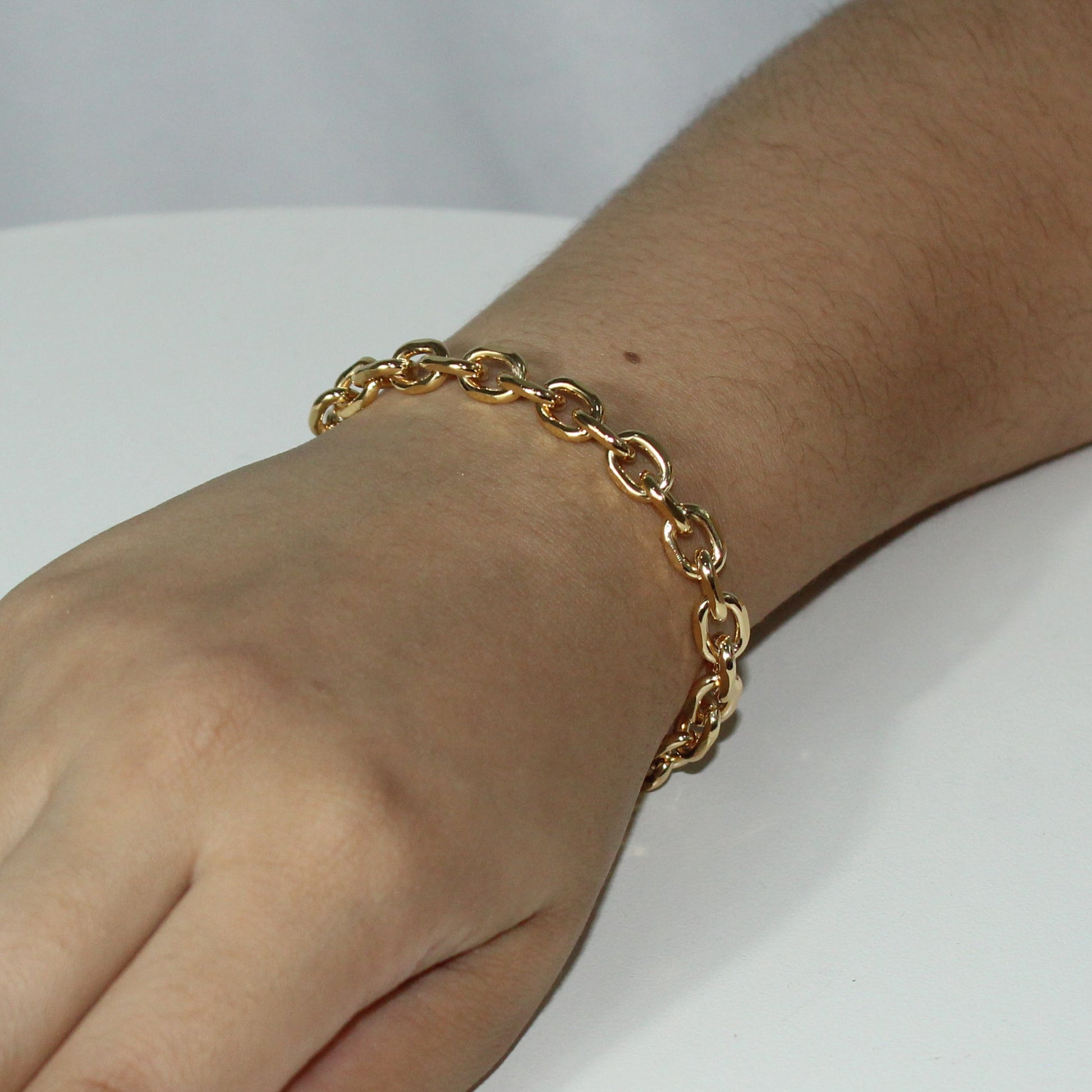 Pulseira Elo Grande Dourada Elegância clássica que complementa qualquer look. Esta pulseira apresenta elos grandes em acabamento dourado, criando um visual sofisticado e versátil. Perfeita para elevar seu estilo no dia a dia ou em ocasiões especiais, combina facilmente com outras peças da sua coleção. Um acessório atemporal que reflete sua personalidade refinada e confiante.