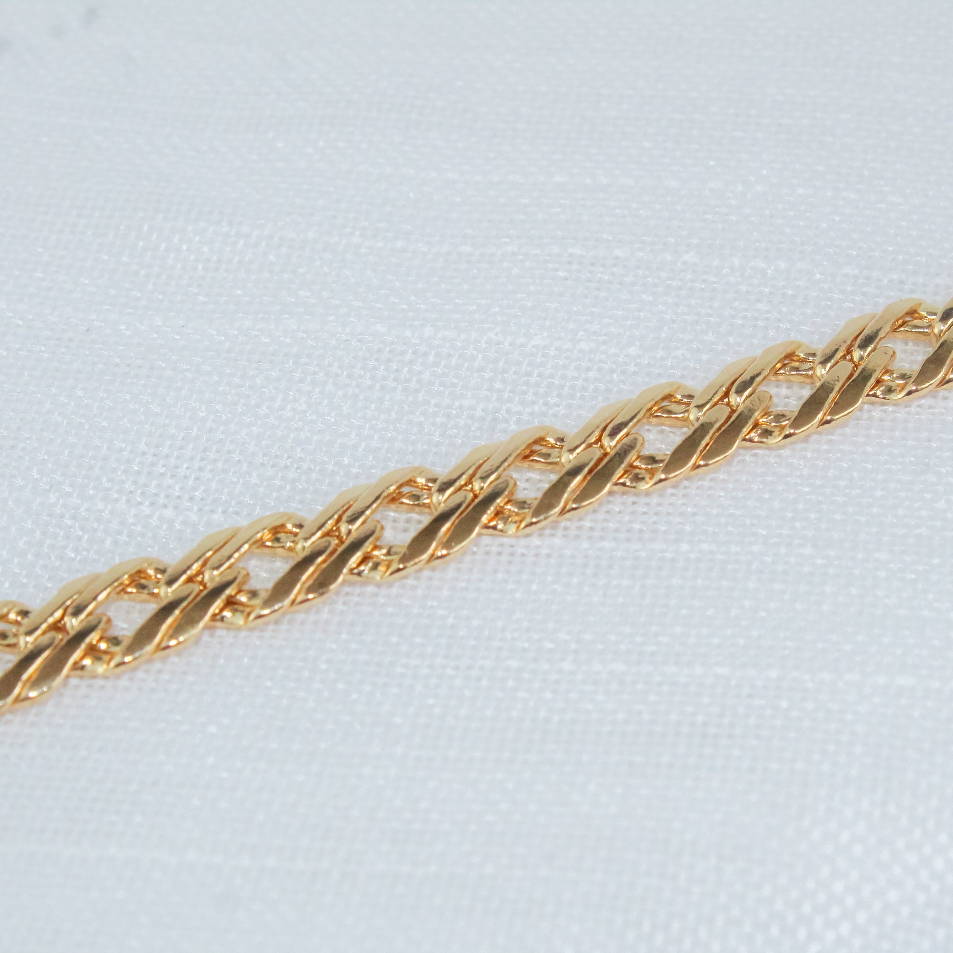 Pulseira Entrelace Dourada Elegância entrelaçada no seu pulso. Esta pulseira dourada combina design sofisticado com conforto para o dia a dia, trazendo um toque de refinamento a qualquer look. O padrão entrelace cria uma textura visual interessante que captura a luz de forma envolvente, tornando-a versátil para ocasiões casuais ou mais formais. Perfeita para quem busca uma peça que equilibra estilo e praticidade, complementando tanto outfits minimalistas quanto composições mais elaboradas.